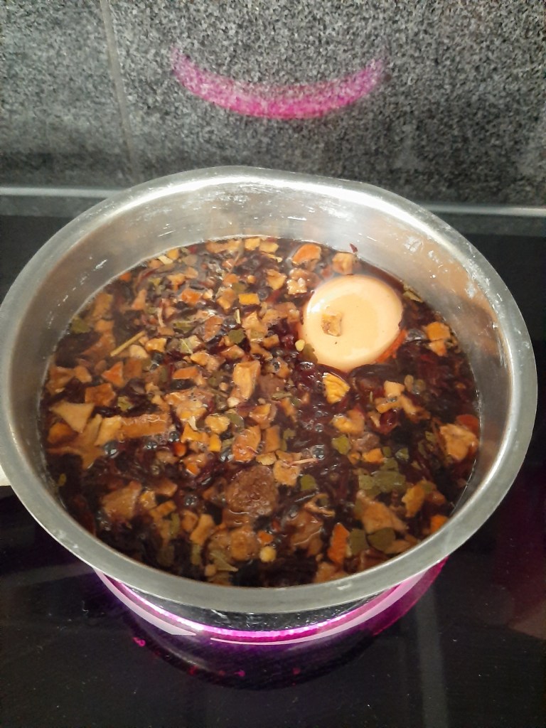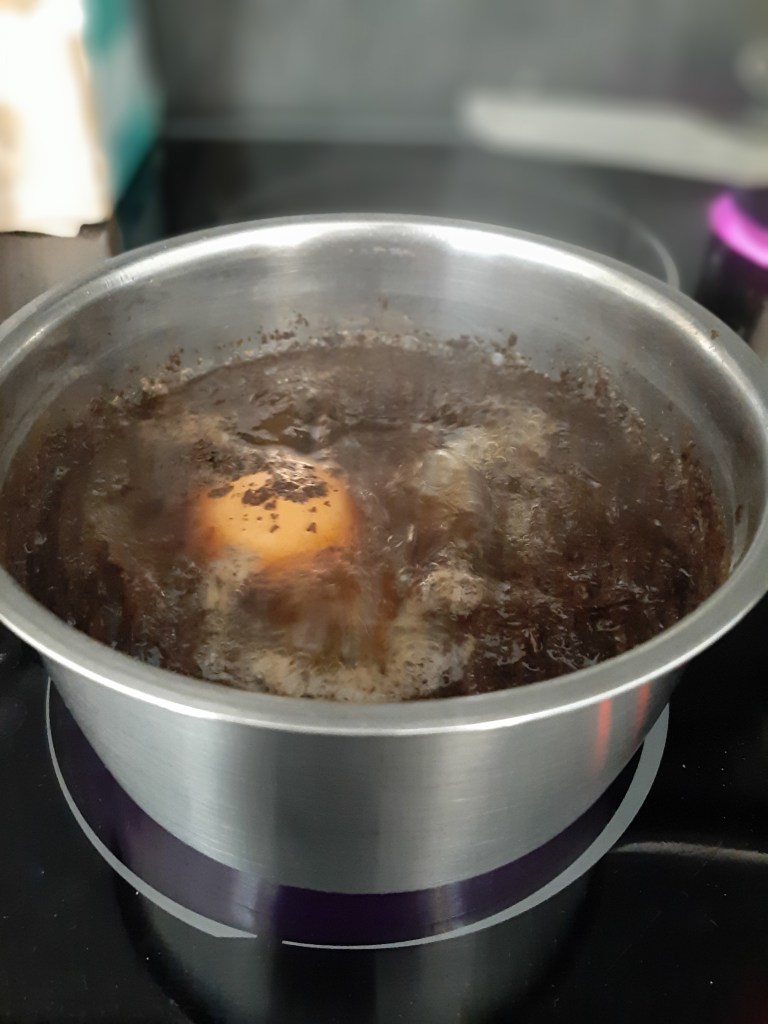 You can either leave boiled eggs in the tea brew over night or simply boil eggs directly in tea for about 15 minutes. I used about 3 tablespoons of tea per 0,5 litre water.