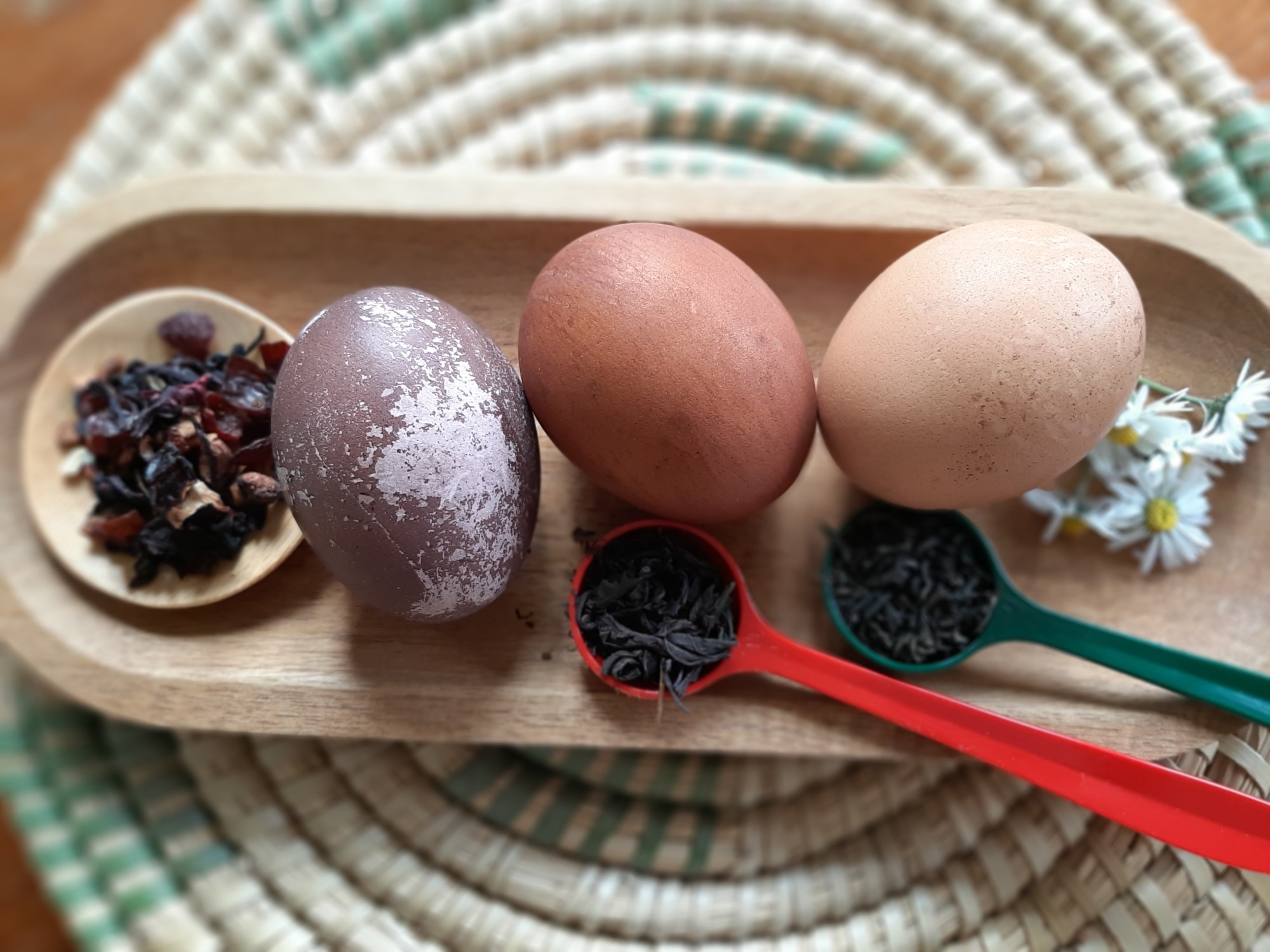 You can also use roiboos, maté and infusions like camomile or turmeric to paint eggs – whatever you have on hand.