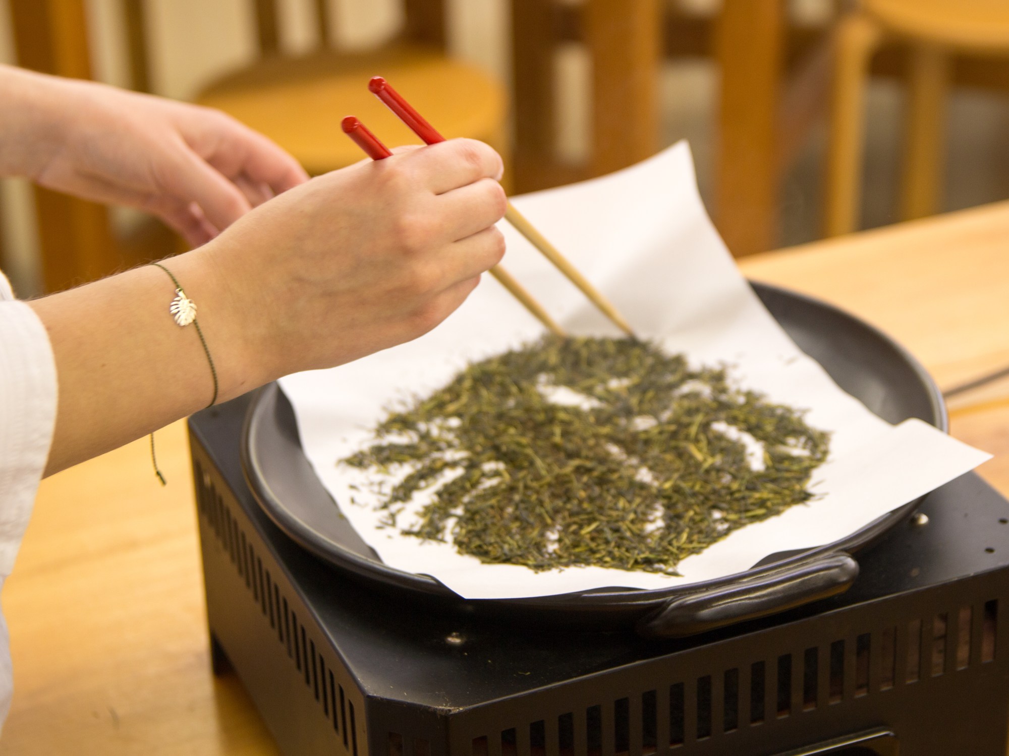 I’ve heard of roasting tea before but now I had this chance to do it myself, in Japan. With the tea instructor by my side at Fukujuen Ujicha Kobo, I learn that sencha – the most popular everyday green tea in Japan – is typically used for roasting when it nears its expiry date (think recycle!).