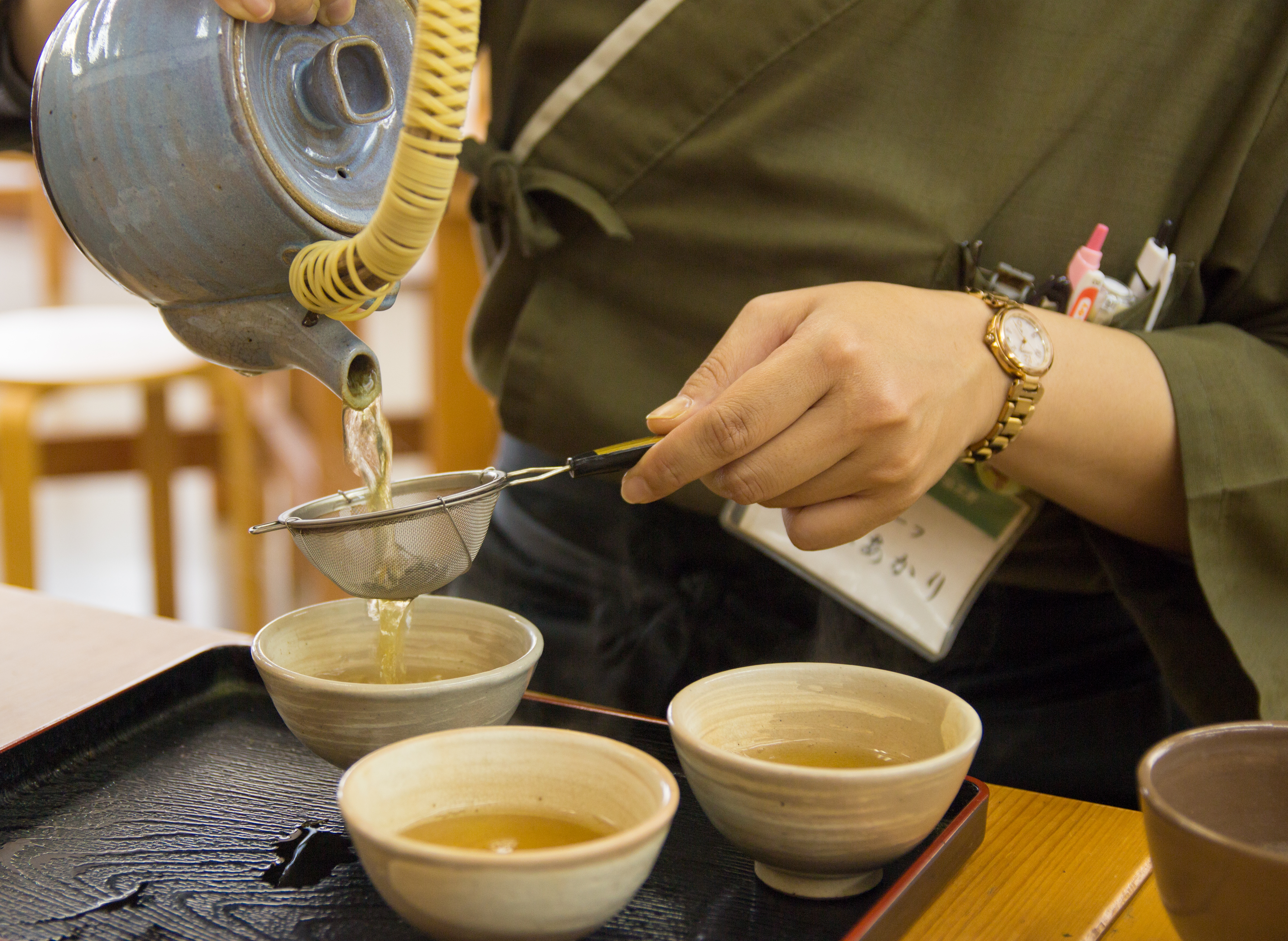 After roasting comes the tasting of our just roasted houjicha. Our tea instructor explains us that you have to pour tea little by little across all the cups to be served (you can watch this technique in the video below).
